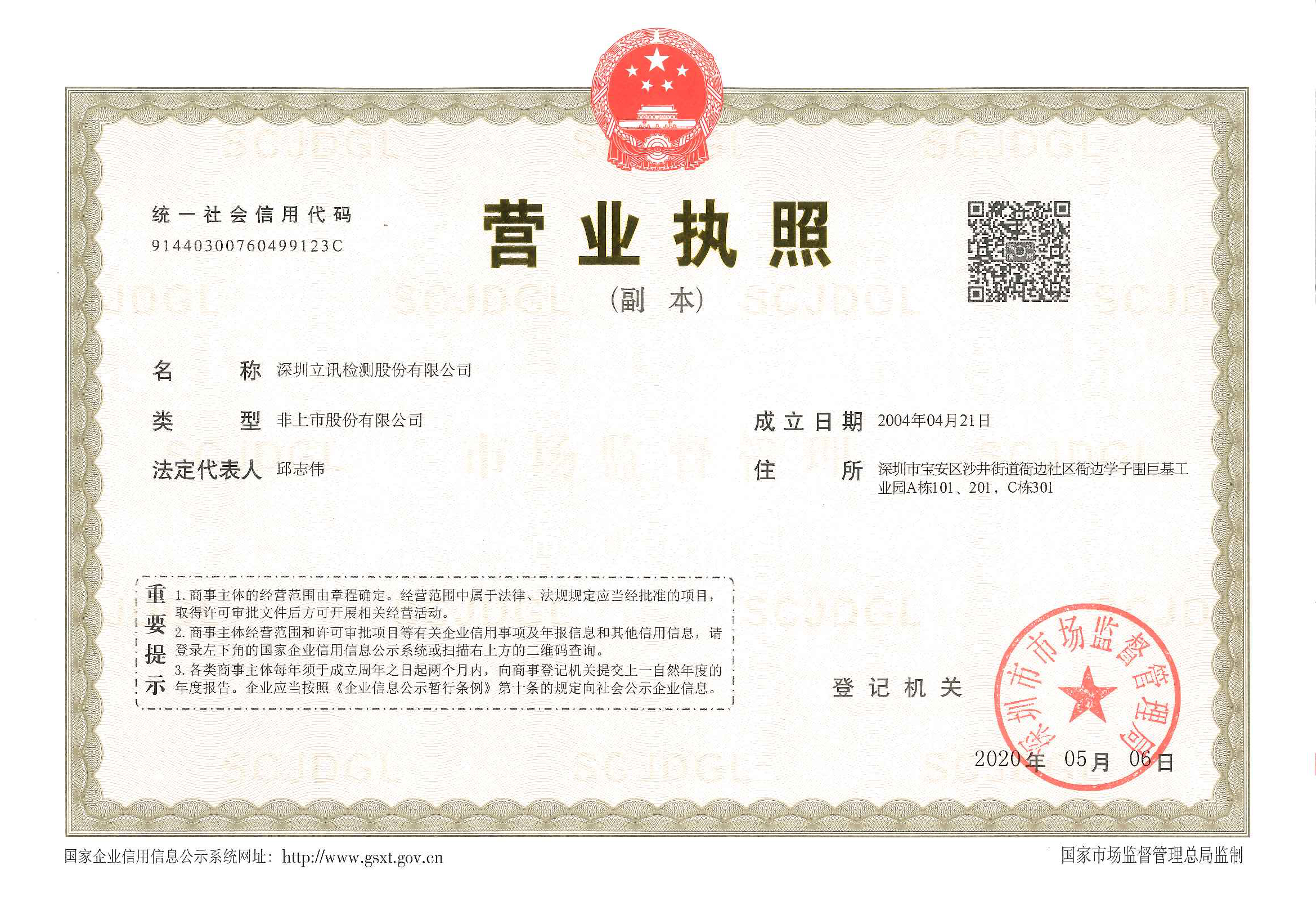 立讯检测(简称LCS)成立于2004年,LCS自成立以来,致力于为客户提供专业的一站式产品检测认证服务,目前已在深圳沙井、深圳后亭、深圳公明、深圳福永、广州、中山、宁波、苏州、重庆分别建立分公司。并在深圳(沙井、后亭、公明、福永)、广州、宁波、苏州、重庆等地建立8大检测基地,在各检测基地建立大型规模的检测实验室已有40余间,主要有电磁兼容、无线射频、产品安全、新能源电池、能效性能、灯具照明、汽车电子、环境可靠性、生态环境检测、化学等类别实验室。